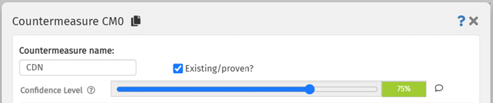 When you add or edit a countermeasure, if the Existing/proven box is ticked, you will be able to provide your level of confidence in the countermeasure by adjusting the slider control.