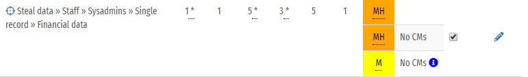 If you have customized the colours used for existing and target countermeasures, then the colours for countermeasures 3 and 8 in the example above (i.e., countermeasures without confidence values) will be different from those shown in the table above. If you wish to set confidence values for countermeasures, you should avoid using the five pre-set colours for custom countermeasure colours.