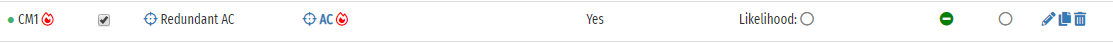 Within the risk table (on the Risks tab), Hazards will be identified with the symbol, and the Likelihood value will span the columns normally used for attacker assessment values.
