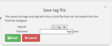 Any tags that you have used are included when you save your RiskTree in JSON format, together with details of their tag sets. Tags that have not been used will not be included in the file.