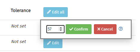 Clicking on the button will remove the edit field and leave the tolerance value unchanged.