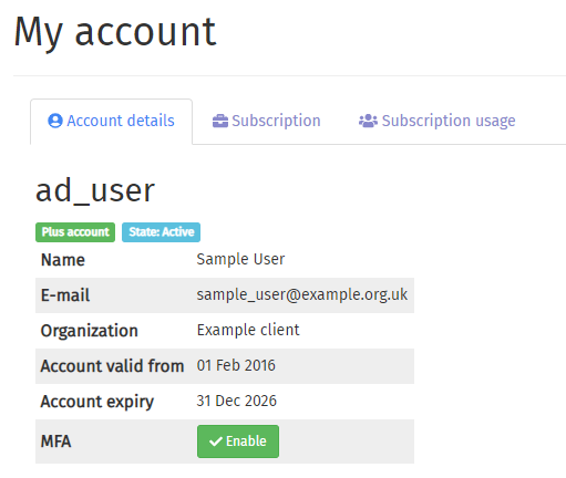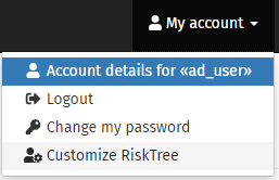 RiskTree supports MFA to protect your account. This is enabled from the Account details tab on the My Account page. To access this, click on My Account in the top menu bar: